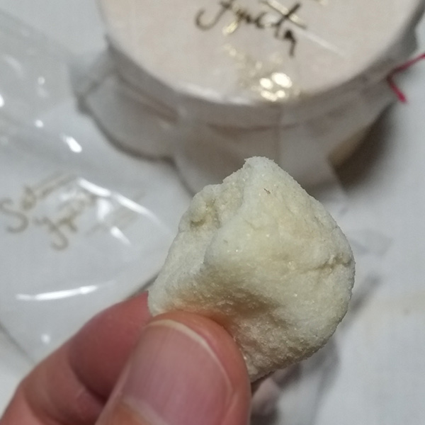 その触感に後ろ髪を引かれる思いですが、そっーと口に運びゆっくりと舌のうえにおいてみます。