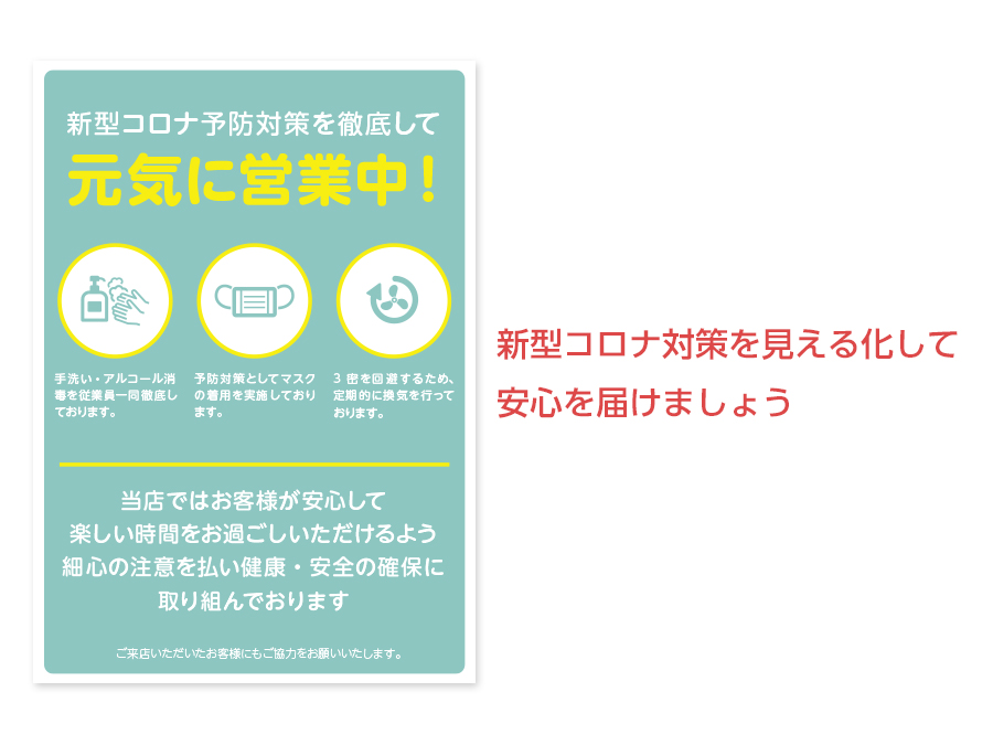 先の見えない不安もありますが、そんな中万全の対策をしながら元気に営業されているお店様に是非、ご活用いただきたいと思います。