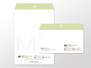 ロゴ・お名刺・封筒(角2・洋長3)の制作をさせていただきました。笑顔の溢れる家づくりを大切にされているとのことで、ロゴからも笑顔が溢れている優しいイメージで制作いたしました。お名刺や封筒にも遊び心を散りばめたデザインを心がけました。