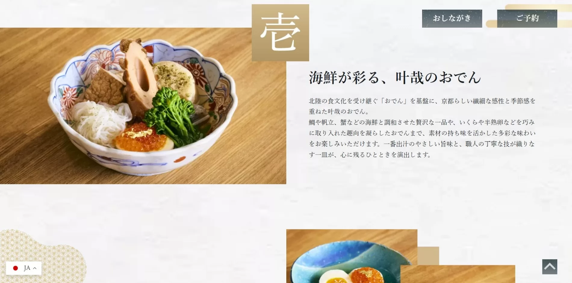 叶哉様は北陸の食文化を受け継ぐ「おでん」を基盤に、京都らしい繊細な感性と季節感を重ねたのおでん割烹です。