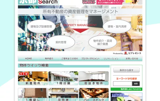京都市東山区を中心に賃貸マンションやテナント物件を取り扱っておられる物件検索サイト
