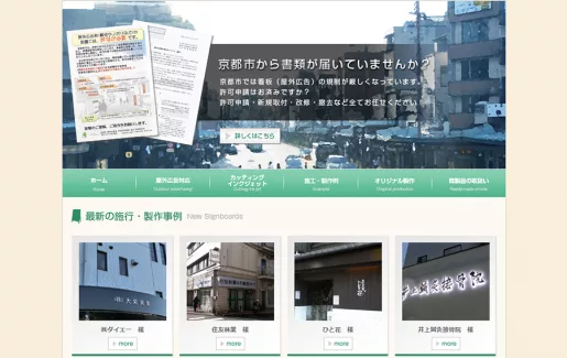 屋外広告の規制や条例に対応した看板制作会社。緑がメインカラーのスッキリとしたデザイン