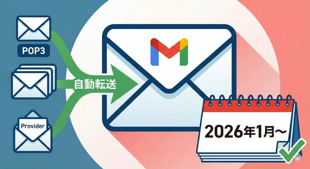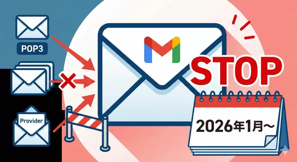 難しく聞こえますが、要するに「Gmailが、よその郵便ポスト(他社サーバー)まで郵便物(メール)を取りに行ってくれるサービス」が終了するということです。